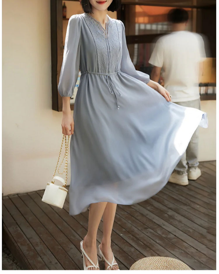 刺繍入りシルクワンピース全体写真