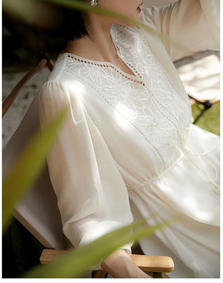 美しい刺繍模様のシルクワンピース
